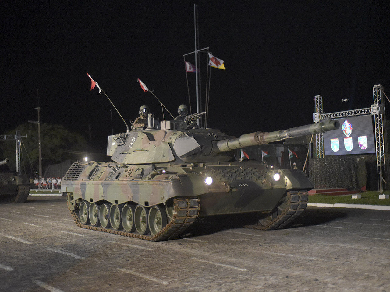El prototipo P.2 del vehículo de combate Osório, con un cañón de 120 mm, fue aplaudido al pasar frente a la tribuna.