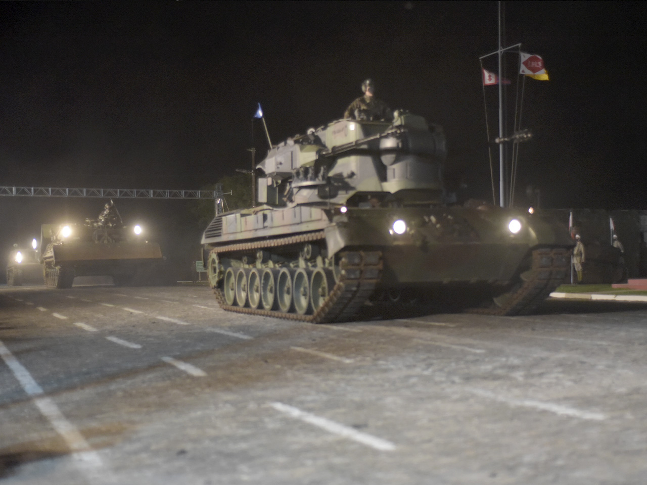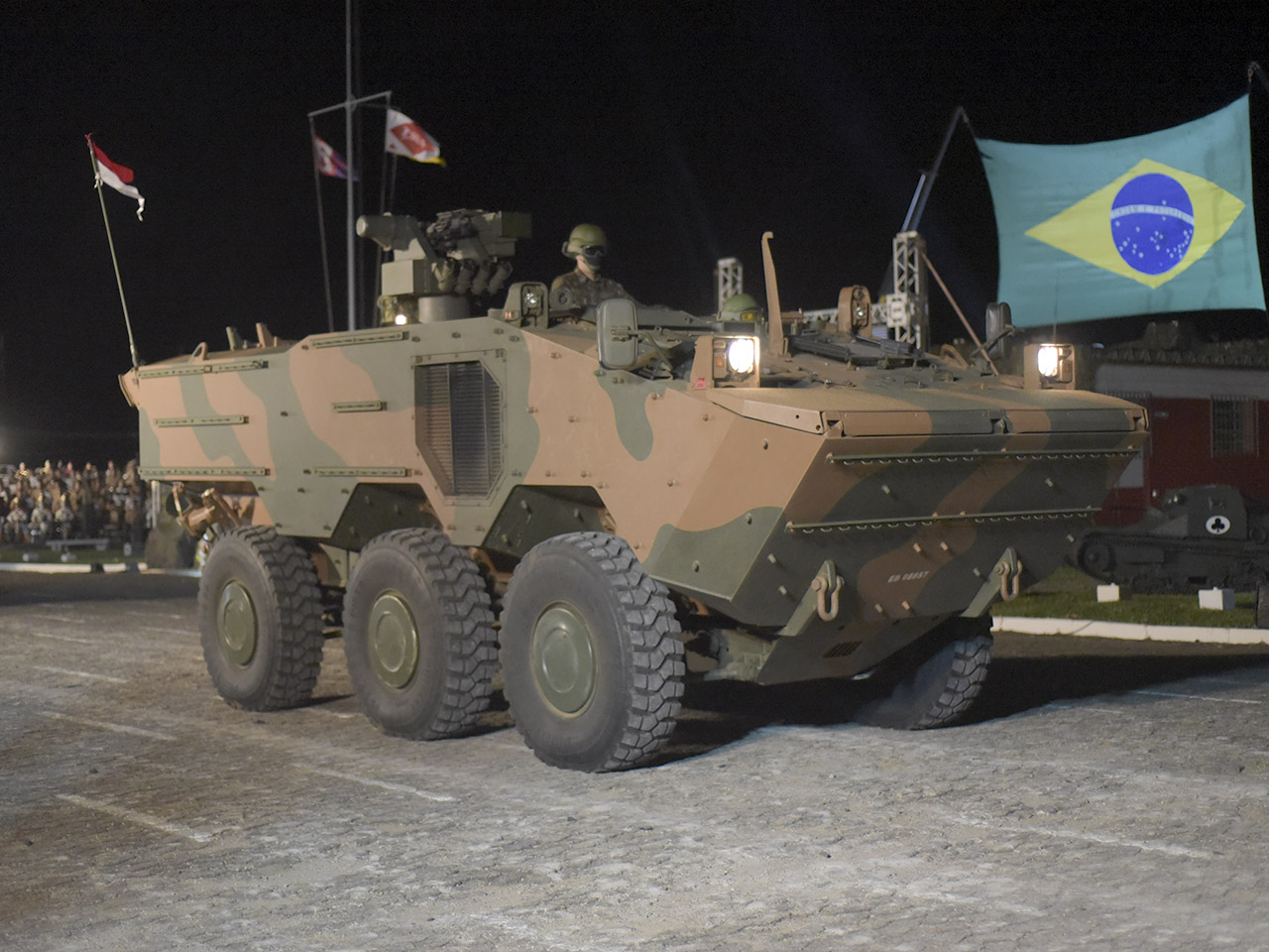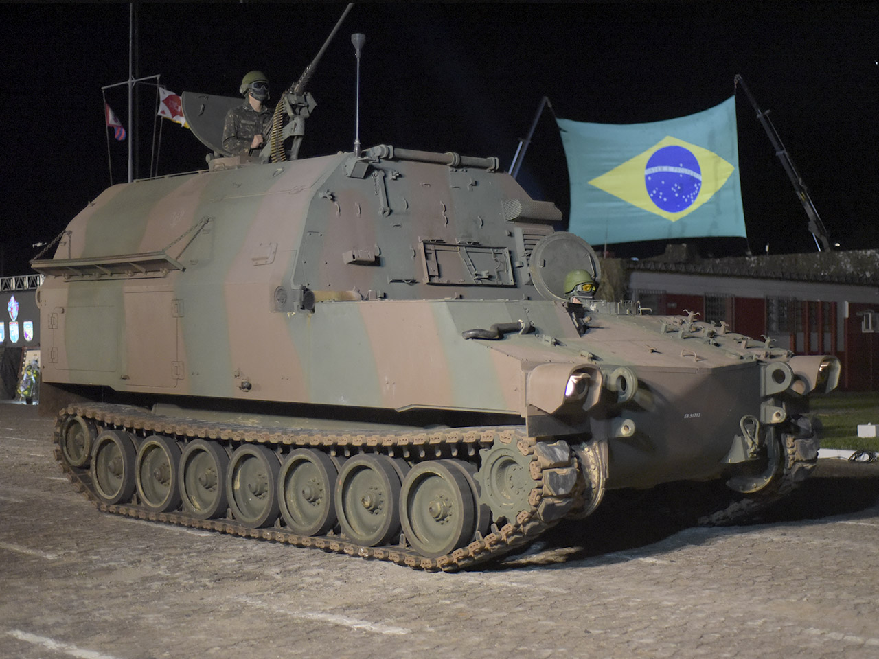 Bajo la atenta mirada del público, desfiló desde el primer vehículo blindado adquirido por la Fuerza Terrestre, el Renault FT-17, hasta los modernos vehículos blindados de transporte de personal (VBTP) 6X6 Guarani. Cada modelo utilizado por el Ejército, pasado y presente, estuvo presente en la ceremonia, con los más antiguos, como el FT-17, el Fiat Ansaldo CV 3/35 II, el M8 Greyhound y el Half-Track, entre otros. se recuperaron por completo y alegraron la noche.