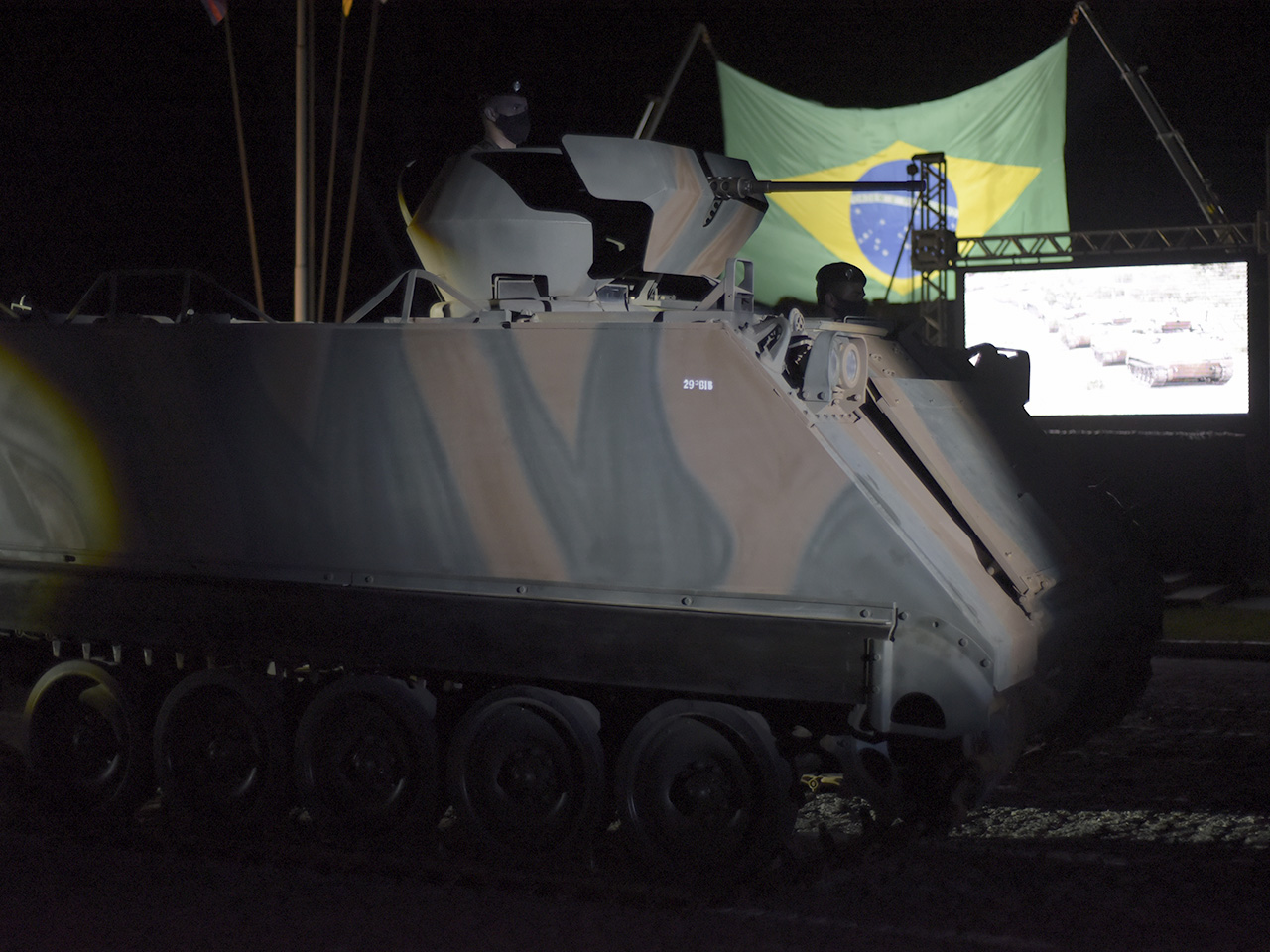 En la noche del lunes 8 de noviembre, la capital blindada nacional centró su atención en el 1º Regimiento de Vehículos de Combate (1º RCC), donde un acto reunió a autoridades civiles y militares, como el Ministro de Defensa, Walter Souza Braga Netto; el comandante del ejército, general de ejército Paulo Sérgio Nogueira de Oliveira; y el Comandante Militar del Sur, General de Ejército Valério Stumpf Trindade.