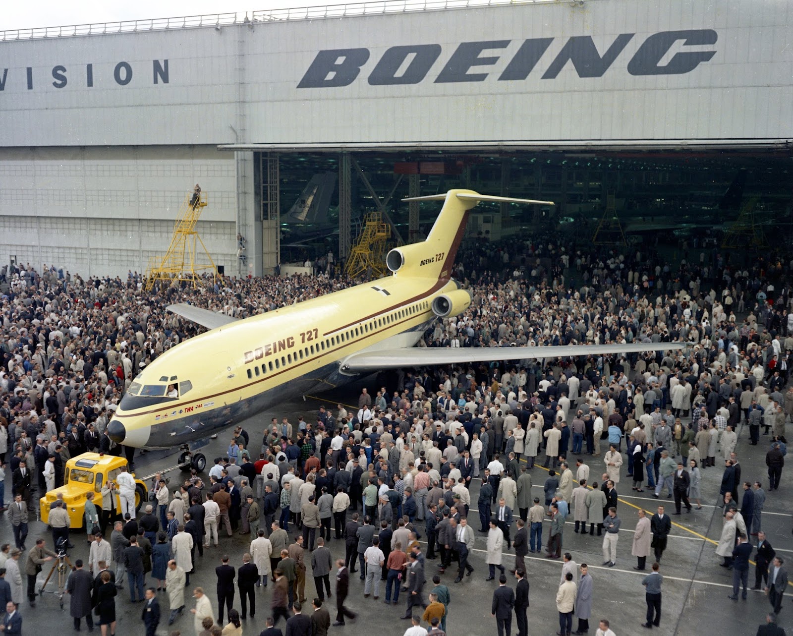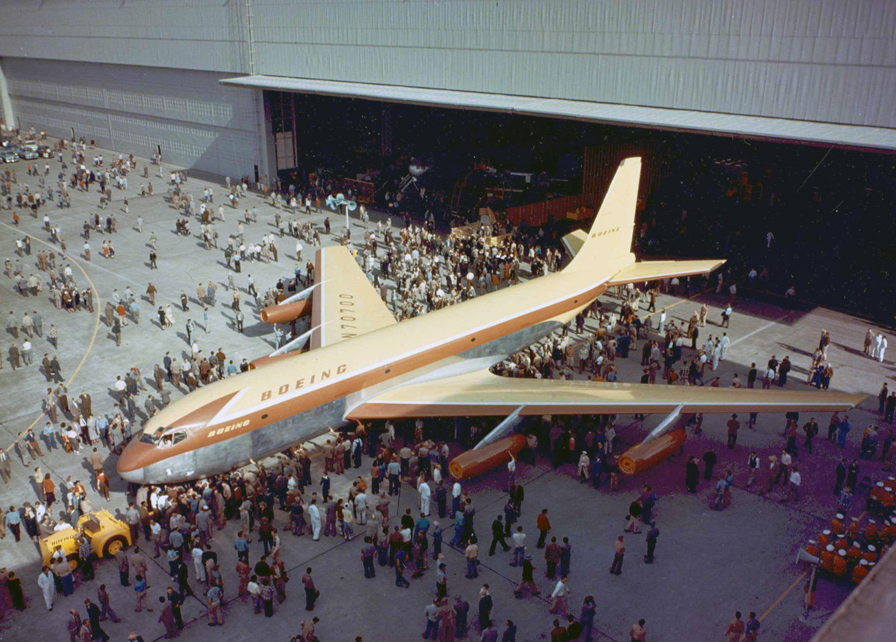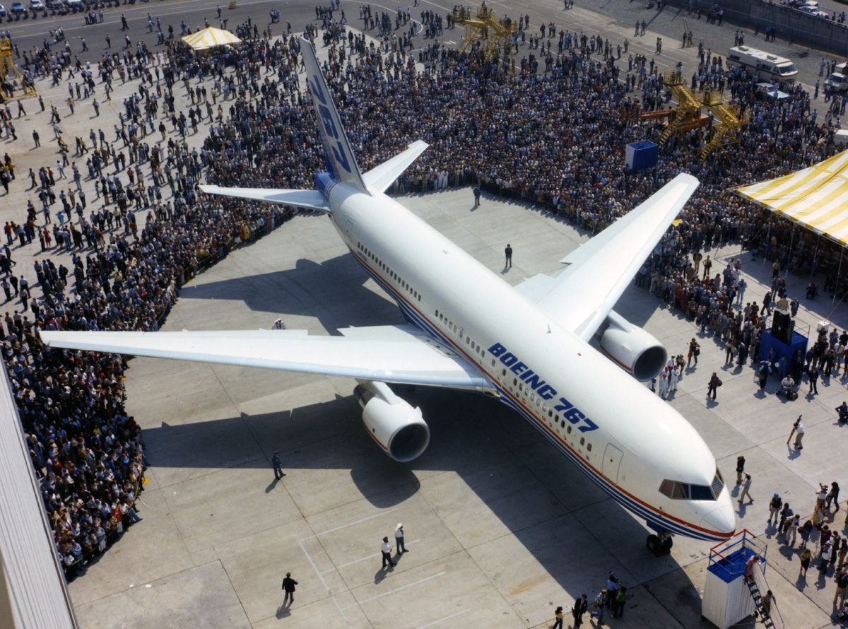 La salida real del avión del hangar de montaje fue el 30 de noviembre. Ese día el avión fue trasladado de este al hangar de pintura, de donde salió portando los colores de Boeing y el nombre “