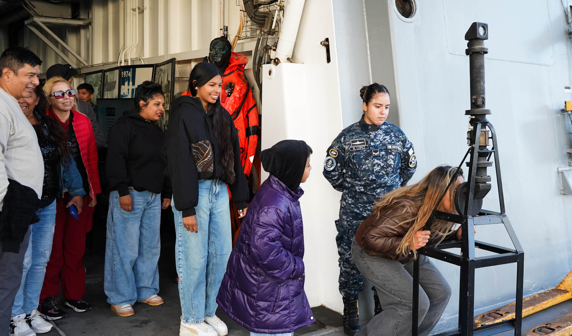 En paralelo, el patrullero oceánico ARA “Bouchard”, dependiente de la División Patrullado Marítimo, recibe a una gran cantidad de visitantes interesados en conocer sus capacidades operativas y su rol en el control y vigilancia de los espacios marítimos argentinos.