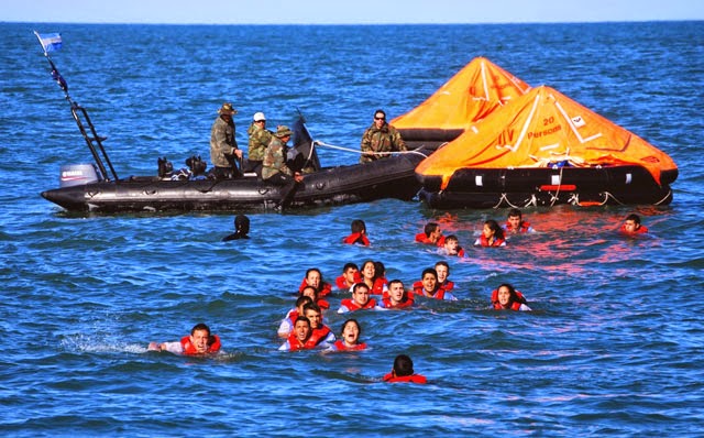 Cadetes de cuarto año de la Escuela Naval Militar realizaron en Mar del Plata 5 jornadas de supervivencia en el mar. Las exigentes tareas incluyeron alistamiento de balsas, natación diurna y nocturna, salto por la borda, instrucción de botes, entre otras. Apoyaron las actividades la Agrupación Buzos Tácticos, la Escuela de Submarinos y Buceo, y el aviso Alférez Sobral de la División Patrullado Marítimo.