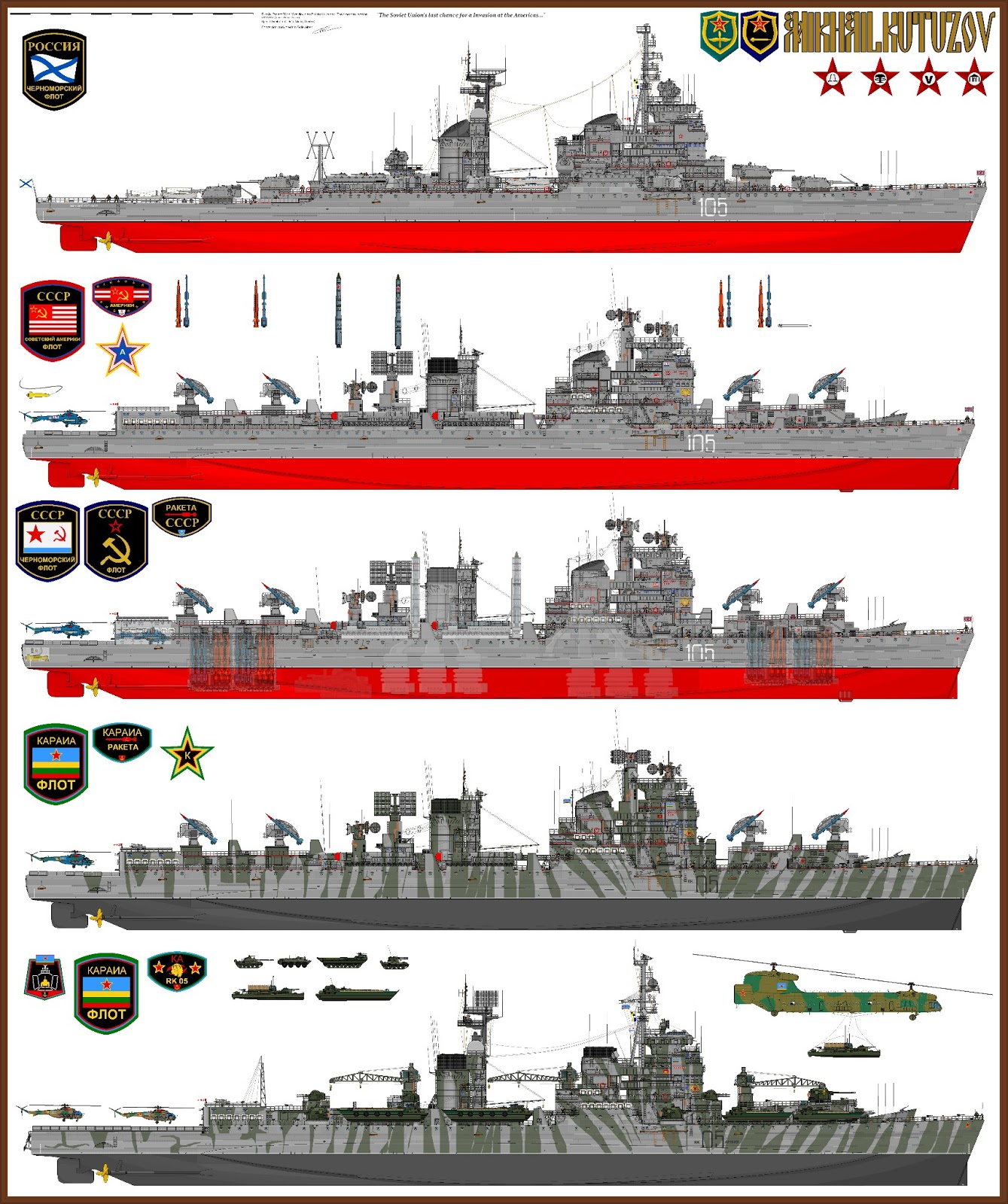 El Senyavin y Zhdanov se convirtieron en naves de comando en el año 1971 mediante la sustitución de las torretas de popa con alojamiento y electrónica adicional. Las dos naves de mando fueron equipados con una cubierta para helicópteros y hangar junto con un sistema de misiles SAM SA-N-4 y 4 cañones de 30 mm gemelas.