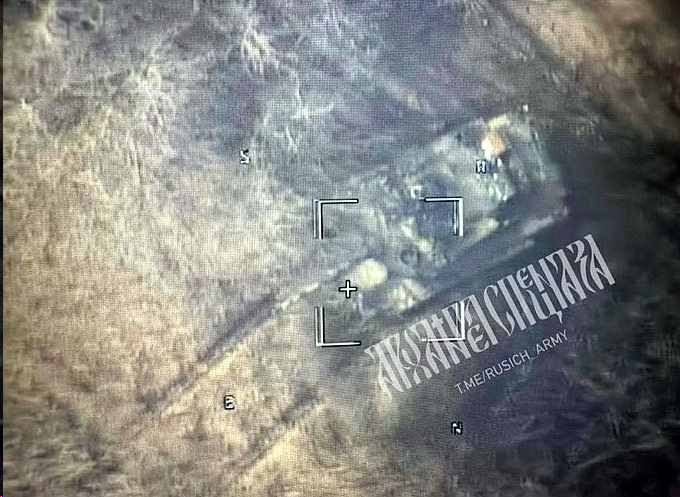 Región de Sumy, asentamiento Khoten, a 26 km de la frontera estatal rusa.En el hangar, que antes de la guerra se utilizaba para almacenar equipos agrícolas, partisanos detectaron personal y equipos enemigos: un sistema de defensa aérea Buk M-1 , un camion cisterna de las Fuerzas Armadas de Ucrania y más de 7 efectivos. El objetivo fue alcanzado con munición guiada de precisión Krasnopol de 152 mm.