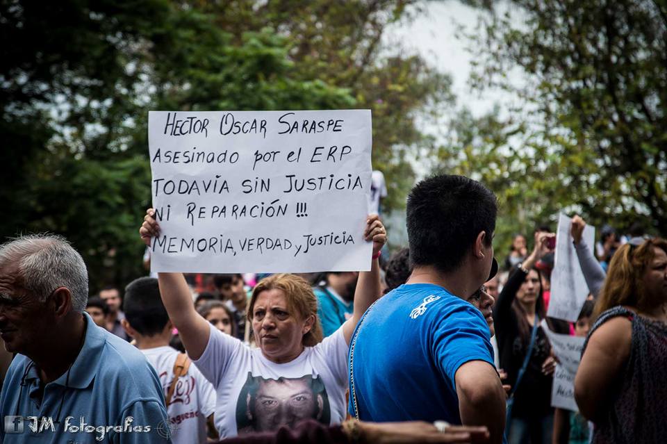 En Tucumán, la hermana del más sangriento terrorista de Argentina, presentó un Festival como consagrando la muerte y la violencia. Allí estuvieron las hijas de Héctor Saraspe, el cantinero de un club de pueblo, asesinado a balazos por miembros del ERP, grupo terrorista liderado por Mario Roberto Santucho, el "santo" horrible de la muerte...que mataba como lo explica la hija de Héctor Saraspe....Saludos.