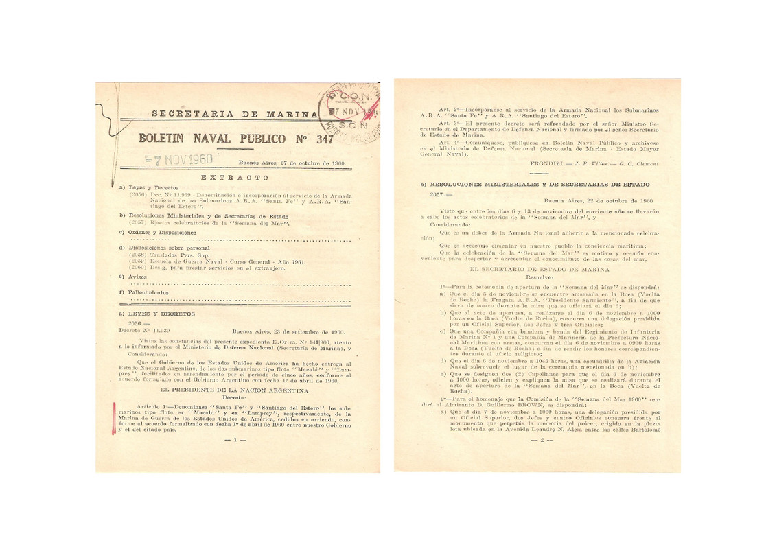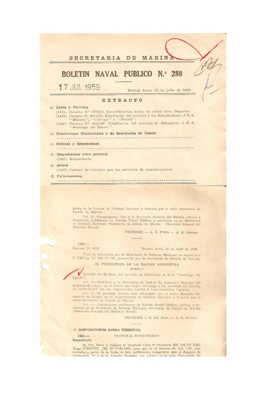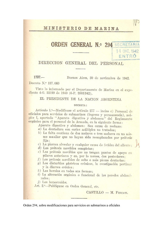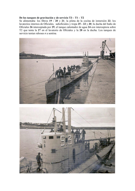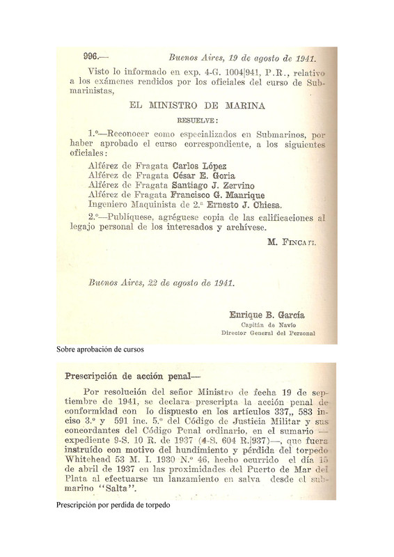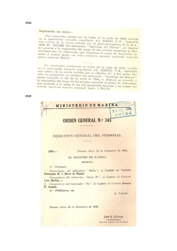 - Santa Fé S-1: "Año 1941- Se adaptaron las sentinas de proa y popa a las dimensiones del torpedo Wh. 1939. Se colocó sistema de angular torpedos desde el exterior del tubo".