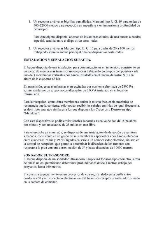 El articulo.....ya empezamos mal con el calibre del caño, redondea a 13,800kg, habla en potencial, cuando es informacion conocida y disponible, el articulo menciona en las adendas un torpedo de 533/7500, los empleados por la Armada tenian esa medida, se diferenciaban por se Mod 27, Mod 30 (unidades italianas) y Mod 39, esto precedido por Wh53......