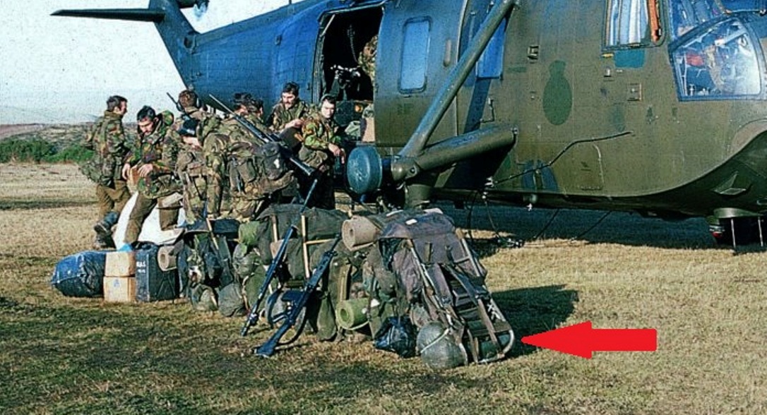 Forma de llevarla en la mochila que utilizaron los Royal Marines en el 82.