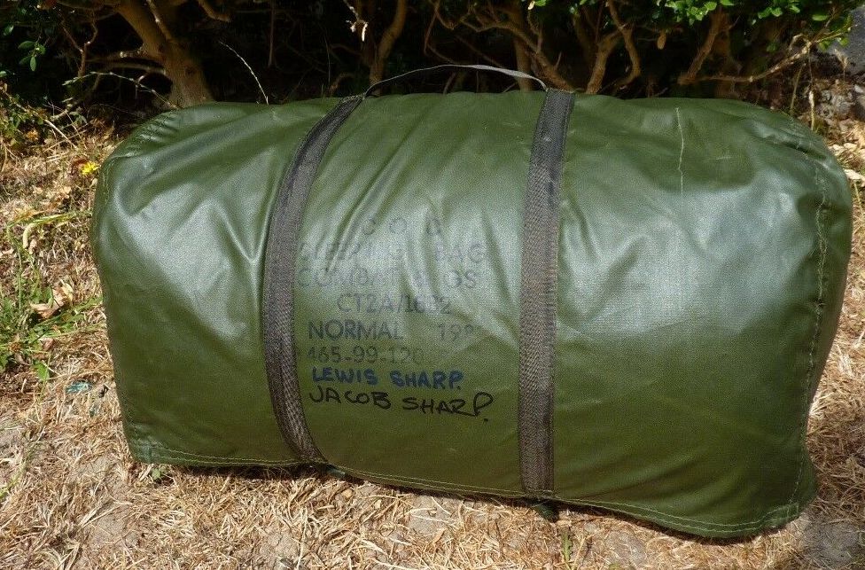 Estimado Lobo, con una de las cosas militares que me quedó de esos años de este lado de la cordillera, fue un saco de dormir muy parecido al que muestras. Es de pluma de ganso(creo), muy calentito y entre una de las rarezas es que tiene una sábana. Lo malo es que bota mucha pluma, si bien es muy caliente, cuando te levantas pareciera que has dormido en un gallinero. No se si será por el tiempo y uso este detalle. Pero es muy parecido al que muestras.Hola para todos, quiero compartir esta bolsa de dormir o "sleeping bag" que, en lineas generales (algunas unidades usaron la ártica), utilizó el Ejército Británico durante el conflicto del Atlántico Sur. Se trata de una buena bolsa, cómoda, fácil de transportar gracias a un asa a tal fin, impermeable en la parte de abajo y que, enrollándose sobre si misma, queda perfectamente cerrada con la parte impermeable hacia afuera para que no se moje. Este ejemplar fue construído por C:Q:C. en el año 1982 como se ve en la etiqueta.