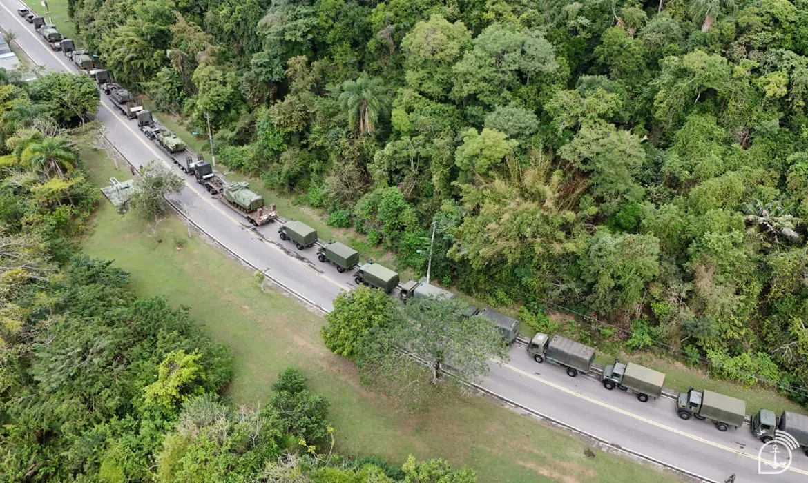 Dentre os destaques, a partir das imagens compartilhadas pela Marinha do Brasil em suas redes sociais oficiais, pode-se observar a presença de sistemas de artilharia lançadora de foguetes ASTROS II, Veículos Anfíbios de Lagartas (CLAnf), viaturas 4×4 e diversos caminhões de apoio logístico, que agregam capacidades às operações em andamento.
