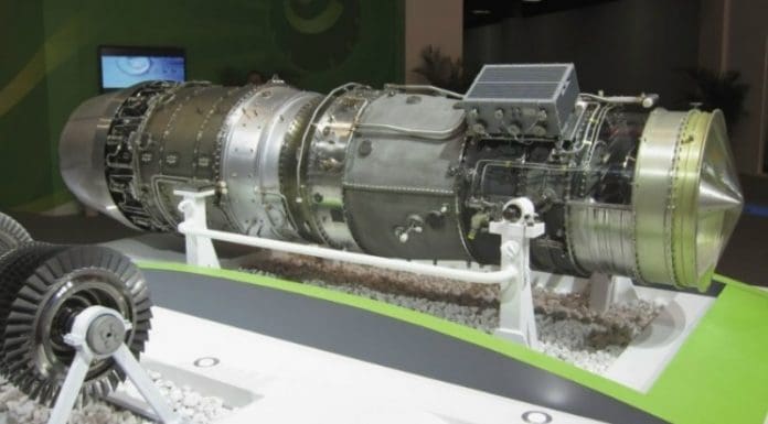 El motor AVIC/GTE Minshan en exhibición en la exposición Air Show Zhuhai 2012 de China....