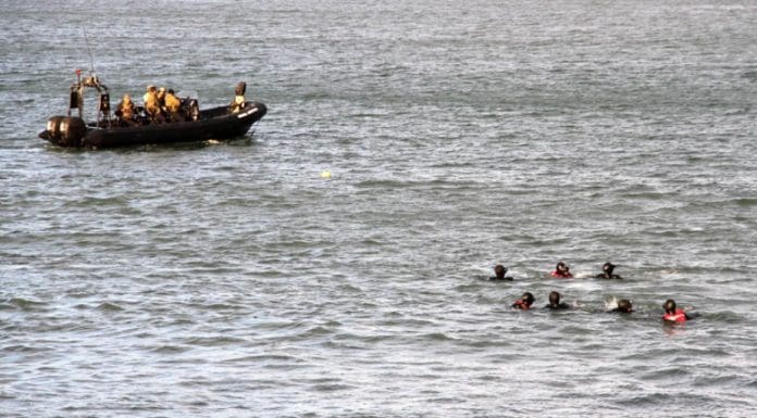 La Agrupación Buzos Tácticos se adiestra en Mar del Plata en conjunto con dos helicópteros Bell 412 y Bell 212