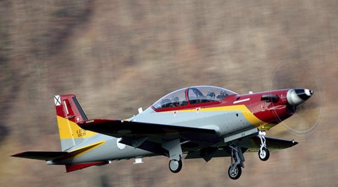El fabricante de aviones suizo Pilatus completó con éxito el vuelo inaugural del primer entrenador de turbopropulsores PC-21 para la Fuerza Aérea Española.