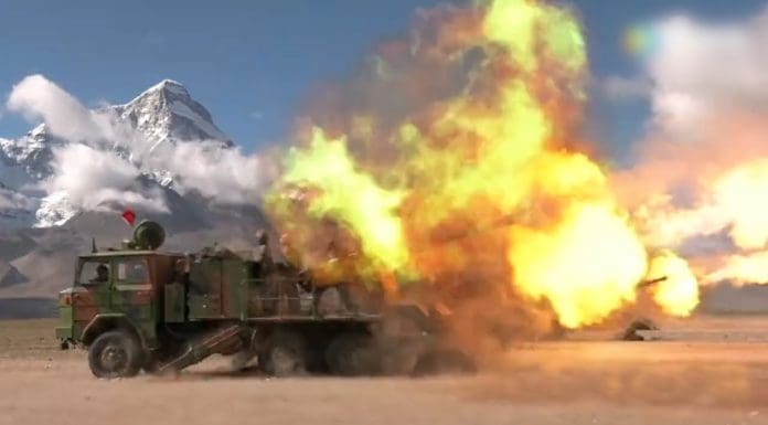 El Ejército de Liberación Popular (PLA) estacionado en la región autónoma del Tíbet, en el suroeste de China, ha sido equipado con nuevos obuses...