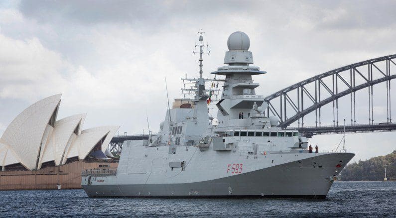 - Al igual que los españoles, hace unas semanas la fragata “Carabiniere” F-593 estuvo presente en aguas australianas, donde participó de maniobras conjuntas con buques de la RAN.